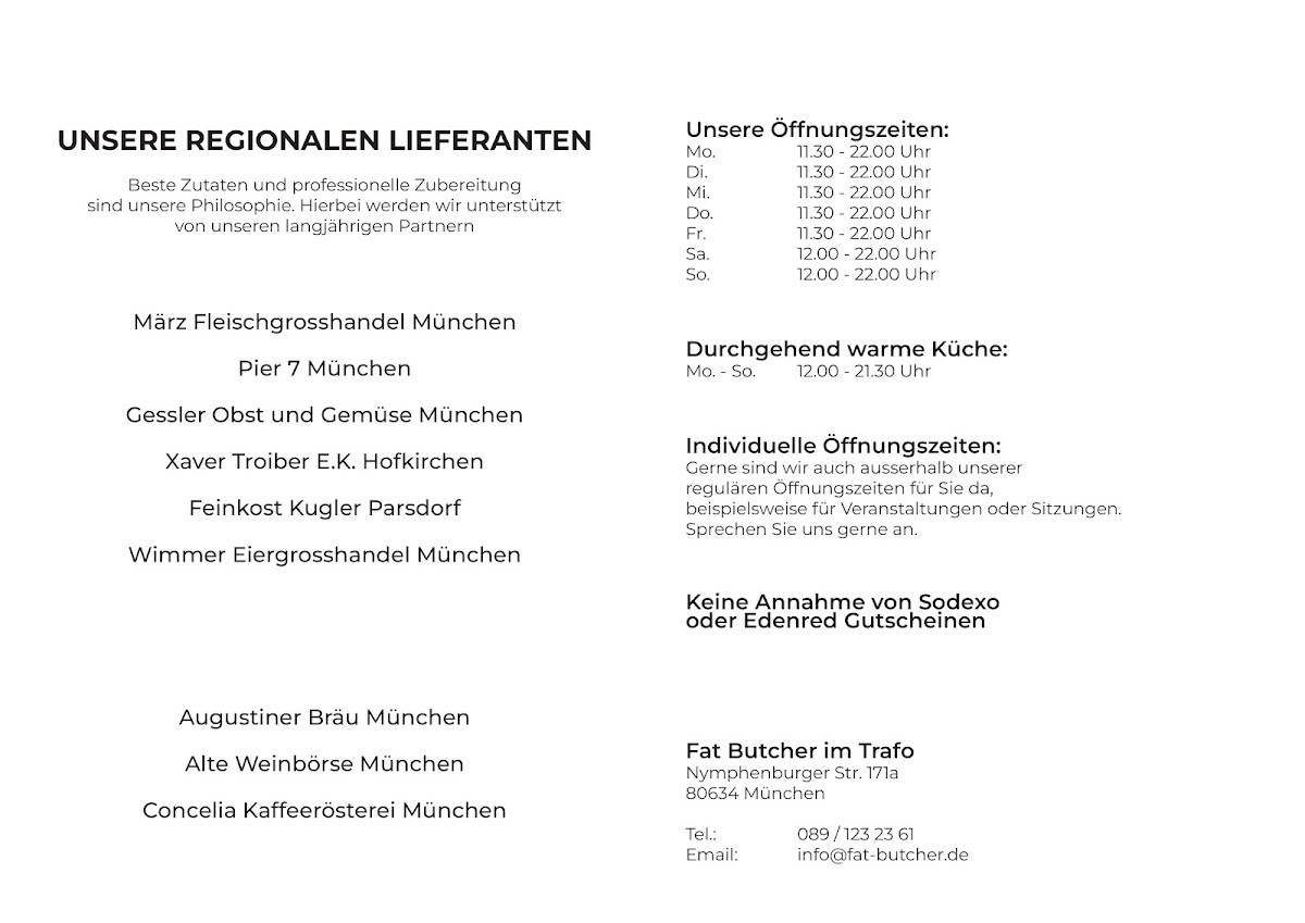 Fat Butcher Menu